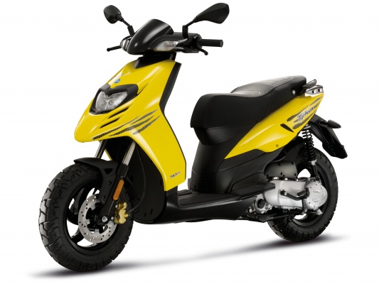 Компания Piaggio представила новый Typhoon 50 по очень соблазнительной цене – всего 1400 евро или 1850 долларов США. Новинка интересна внешне и показывает прекрасные результаты по динамике и скорости, благодаря обновленному двигателю. Двигатель теперь четырехтактный, четырехклапанный, объемом 49 см3. Охлаждение – воздушное. Также новинка оборудована 14 дюймовыми колесами и большим баком. Новый двигатель способен раскрутиться до 9500 оборотов, выдавая при этом 4,5 л.с. мощности. Максимальный крутящий момент достигается при 8000 оборотах. При этом максимальная скорость составляет скромный по итальянским меркам 65 км/ч.